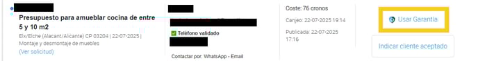 Haz clic en “Usar Garantía” junto a la solicitud.