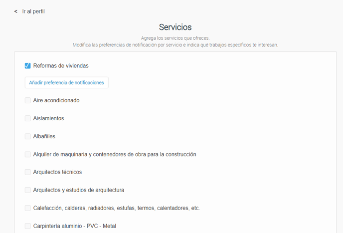 Si marcas un servicio, te avisaremos por email cuando haya solicitudes en tu zona. Si lo desmarcas, dejarás de recibir notificaciones sobre ese servicio.