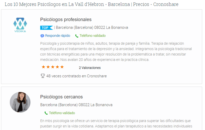El directorio de Cronoshare muestra perfiles profesionales según criterios automáticos como calidad del perfil, servicios ofrecidos y ubicación. No es posible pagar para aparecer en listados específicos.