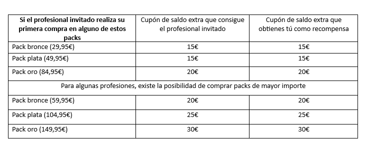 • Puedes invitar a tantos profesionales como quieras. No hay límite de cupones.